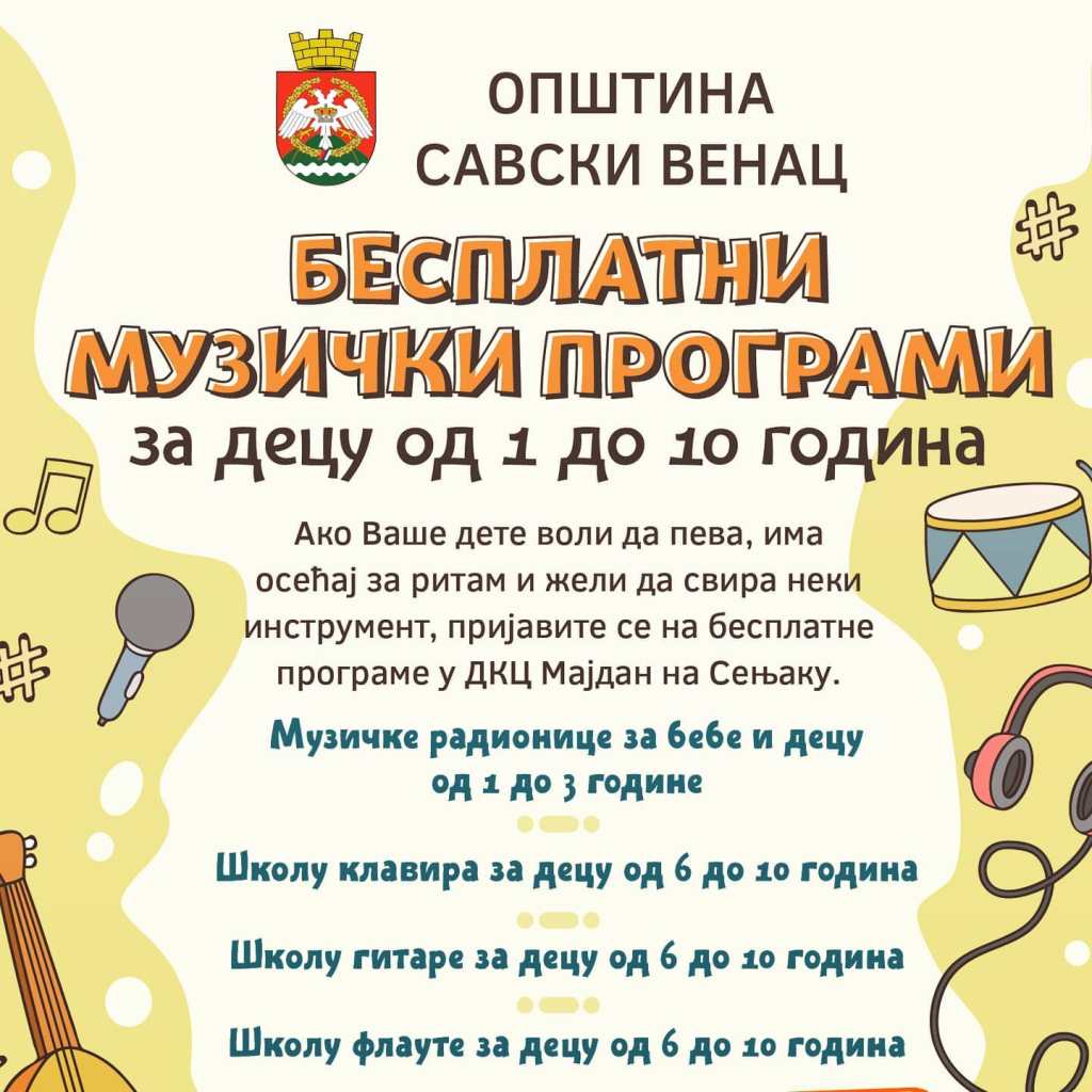 Ako Vaše dete voli da peva, ima osećaj za ritam i želi da svira neki instrument, prijavite se na besplatne muzičku edukaciju u DKC Majdan na Senjaku׃