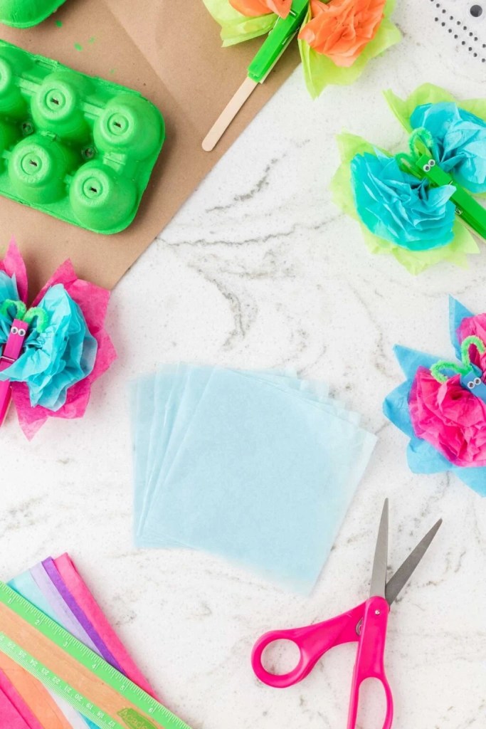 - Isecite krep paprie u bojama 5 x 5 cm različitih boja i ostavite sa strane.
